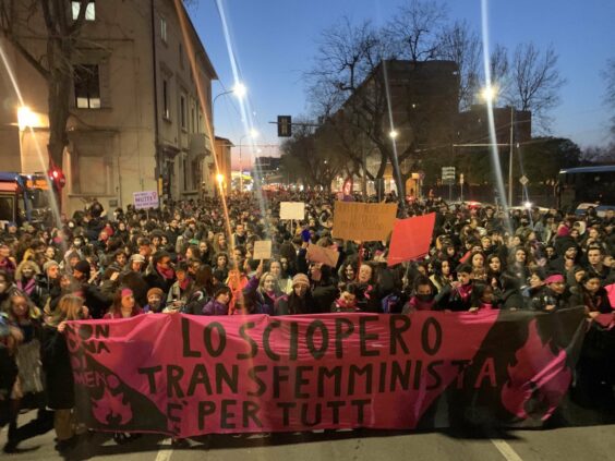 - Organizziamo passeggiate transfemministe e frocie contro l’eterocisnormatività, il cissessismo e la transesclusione. Pratichiamo l’uso di un linguaggio che visibilizza le diversità con azioni di hackeraggio anche nell’accademica utilizzando la “u” e la schwa o l’elisione. Denunciamo le pubblicità sessiste, i dresscode, le discriminazioni di genere, la transesclusione nei luoghi di lavoro. Partecipiamo e diffondiamo l’indagine sui temi del lavoro di Non una di meno per visibilizzare le discriminazioni e il gate keeping.